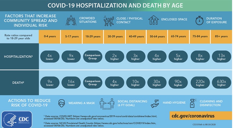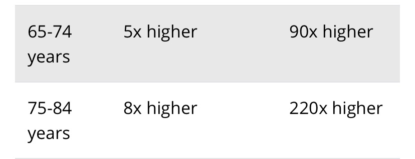 A continuación una tabla de la CDC donde junta la información de hospitalización y posibilidad de complicaciones. Al momento que se junta la edad con el factor de obesidad, aumenta los riesgo sobre problemas y mortalidad.