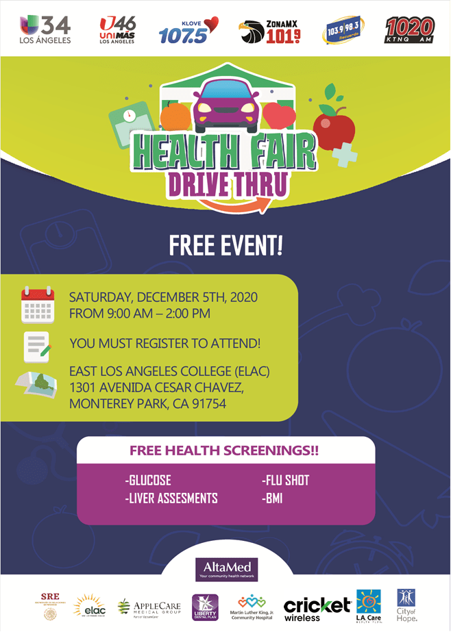 Compartiendo este evento con todos. Dará vacunas gratuitas contra la gripe para adultos y otros #drivethru #HealthFair